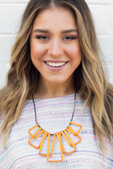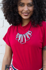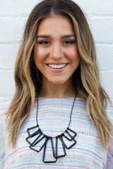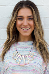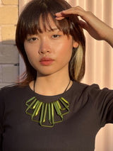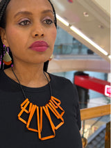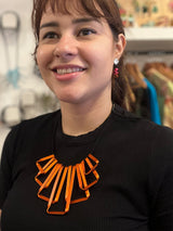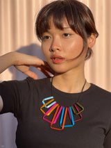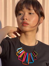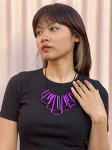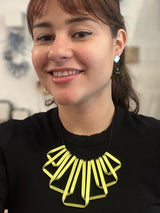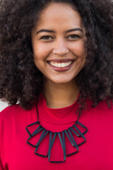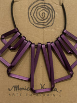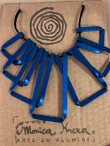 Monica Krexa's necklace is made in Brazil and crafted from lightweight recyclable anodized aluminium. Vegan leather band is adjustable.